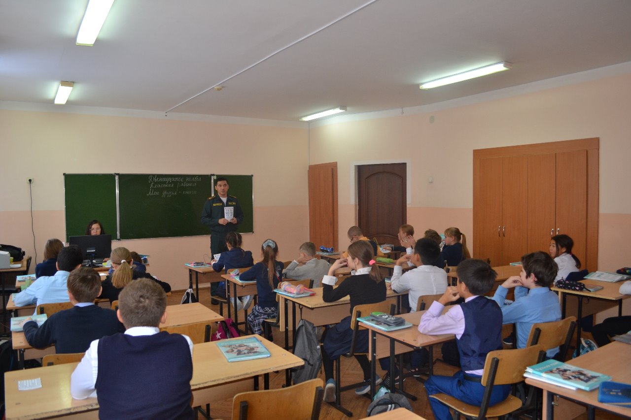 Лекция для 5-х классов совместно Управление Гражданской Обороны Департамента по чрезвычайным ситуациями «Меры безопасности при пожаре и осторожно, тонкий лед».д». Учащиеся посмотрели презентацию ,и обговорили ситуации, когда человек попадает в беду, как найти выход из ситуации.